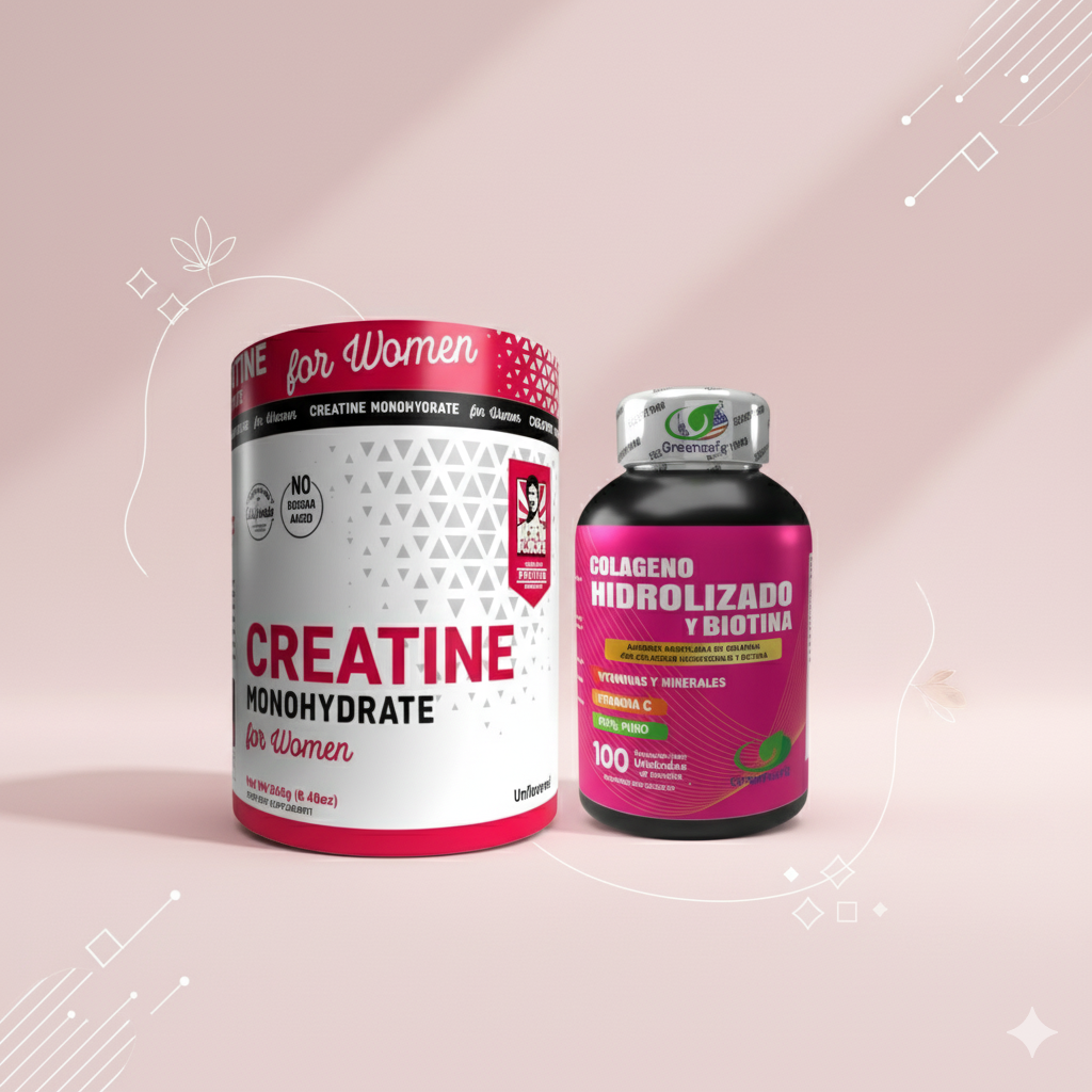 La combinación exclusiva de Creatina Pura + Colágeno Hidrolizado diseñada para la mujer colombiana que no negocia sus resultados. Potencia tus músculos, blinda tu belleza.